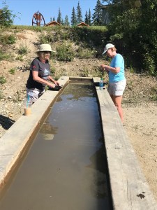Susan and I had a fun time panning for gold in our campground in Chicken.  We spent many hours in the hot sun and both came up with small flecks of gold.  One panner near us did find a nugget so we knew “there is gold in them there hills”. Unfortunately, only flecks were in our mining pans.
