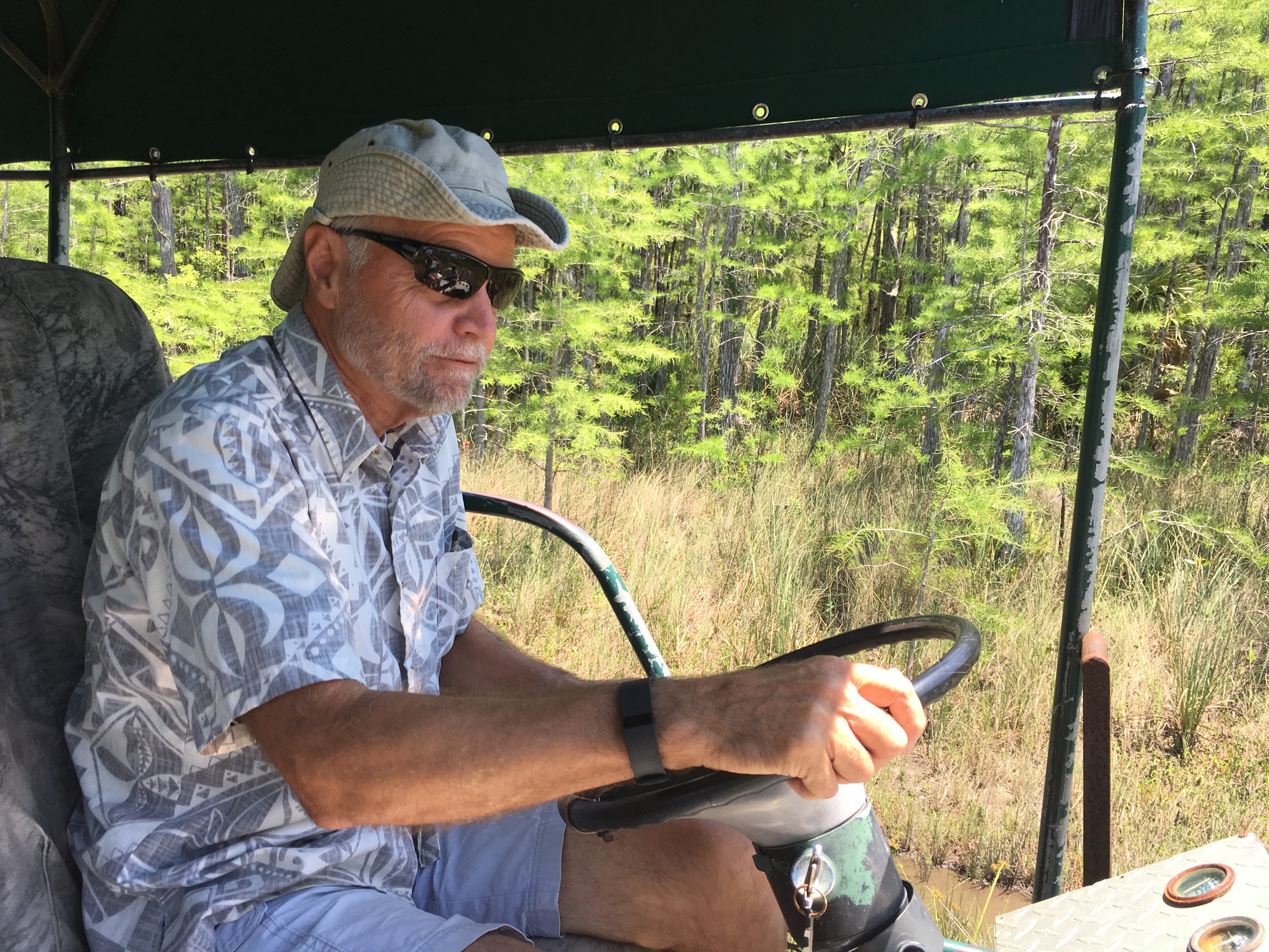 Kenny concentrating on maneuvering through the swamps